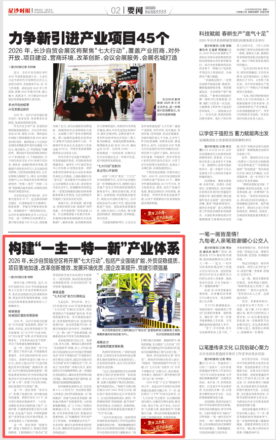 2026年,长沙自贸临空区将开展“七大行动”,包括产业强链扩能、外贸促稳提质、项目落地加速、改革创新增效、发展环境优质、国企改革提升、党建引领强基